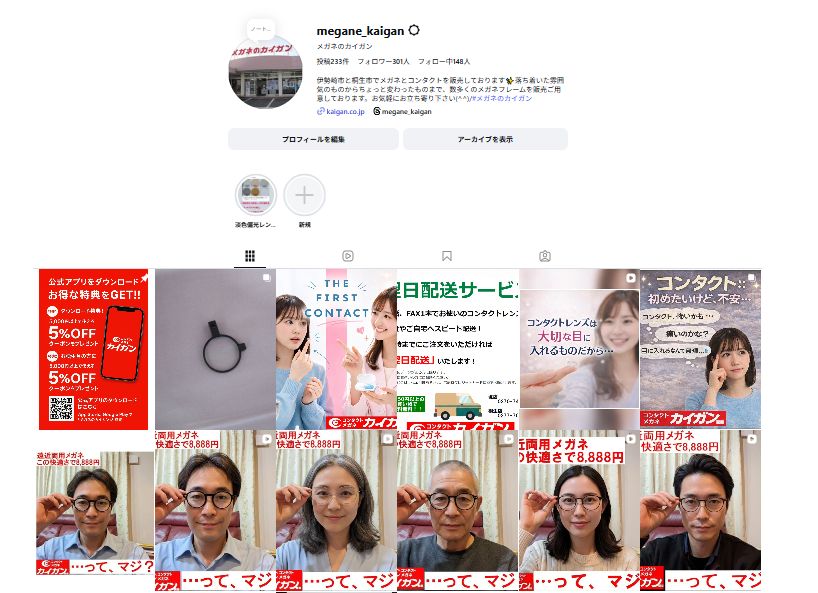 メガネのカイガンでは、各種SNSにおいてもお得な情報、楽しい情報を発信しております。